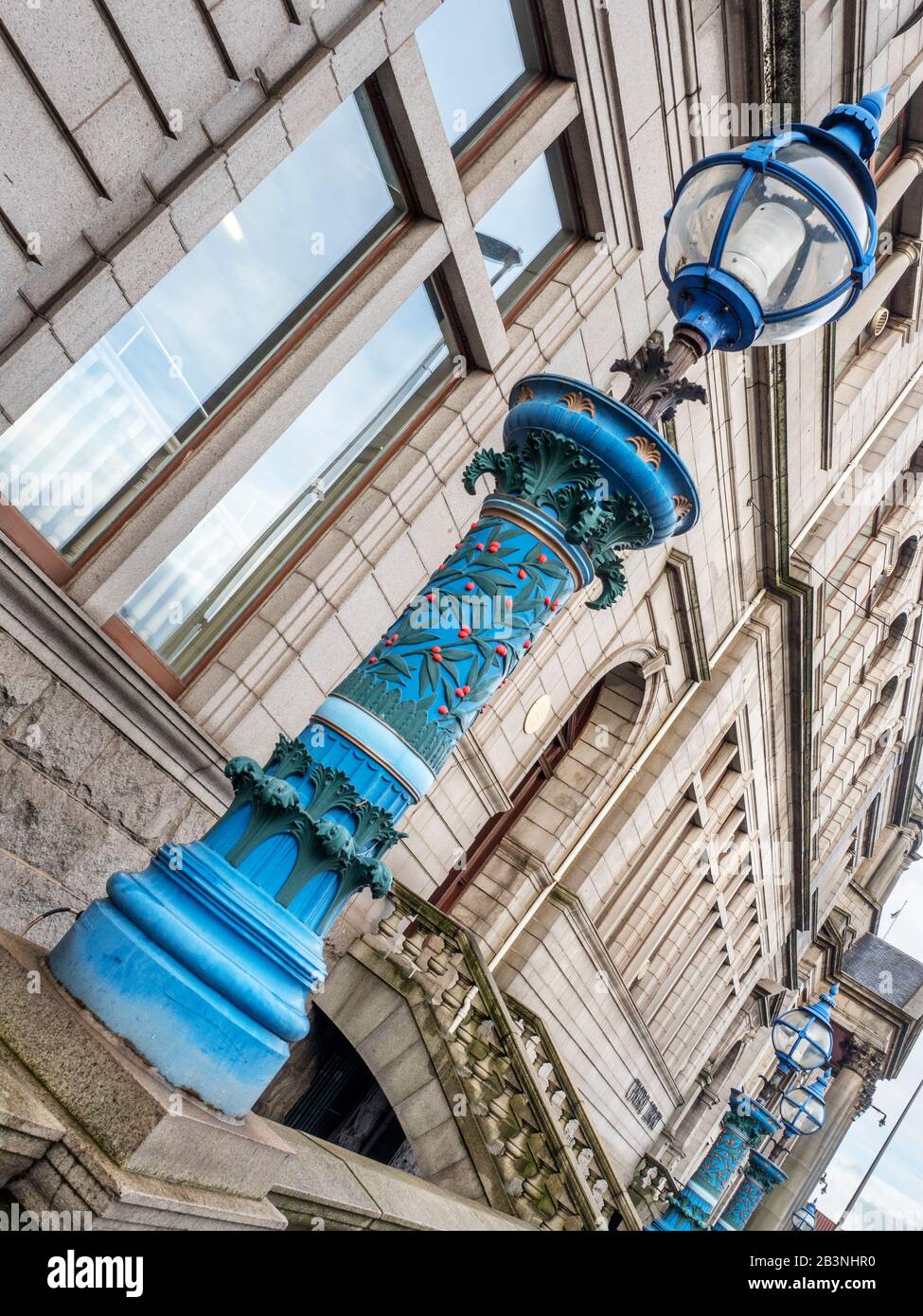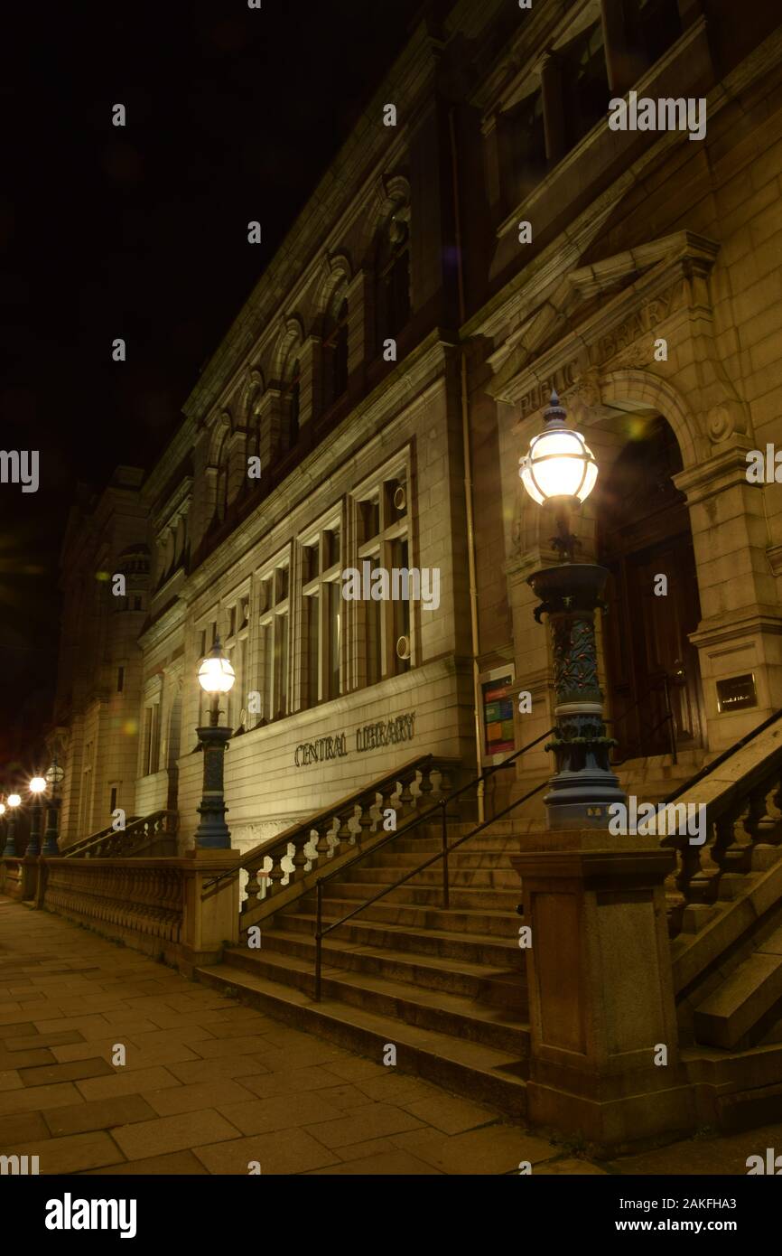 Lantern Style Street Lamps And Central Library Aberdeen At Night