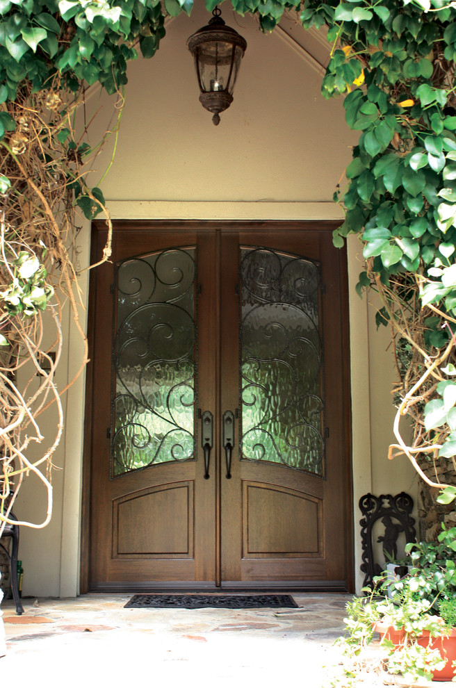 Mahogany Aberdeen Solid Panel Double Door Arch Top W Boneau Iron