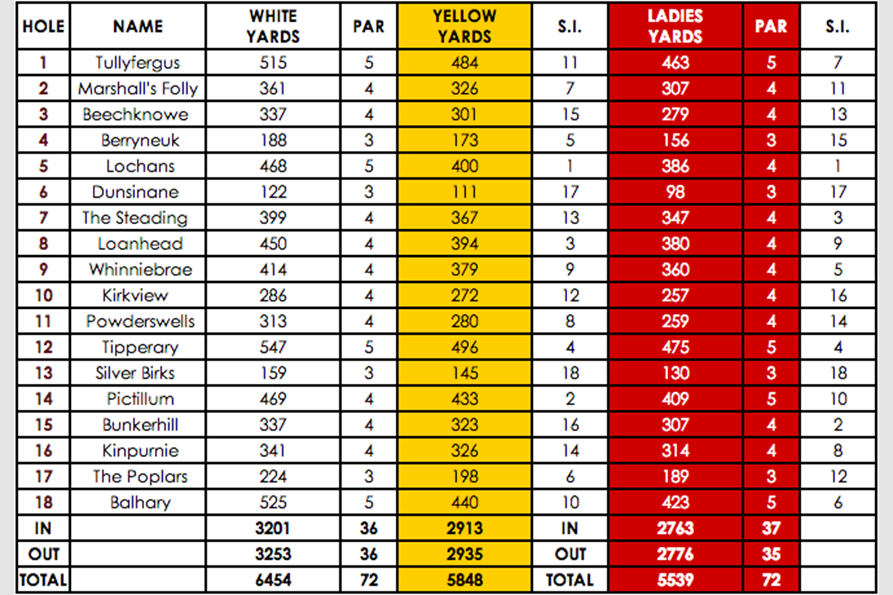 Aberdeen Country Club Scorecard
