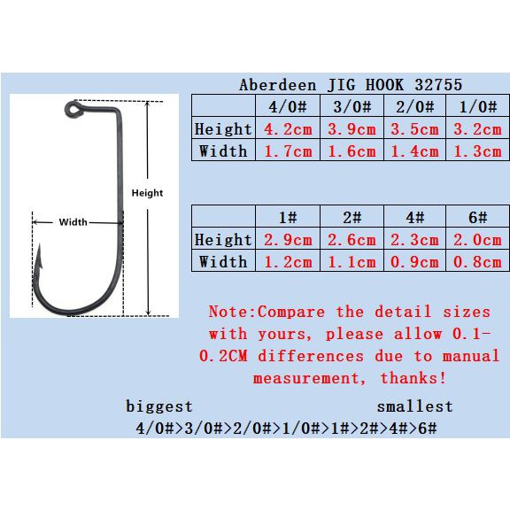 Aberdeen Hooks Fishing Tackle Hook Sizes 4 2 1 1 0 2 0 3 0 4 0 5 0