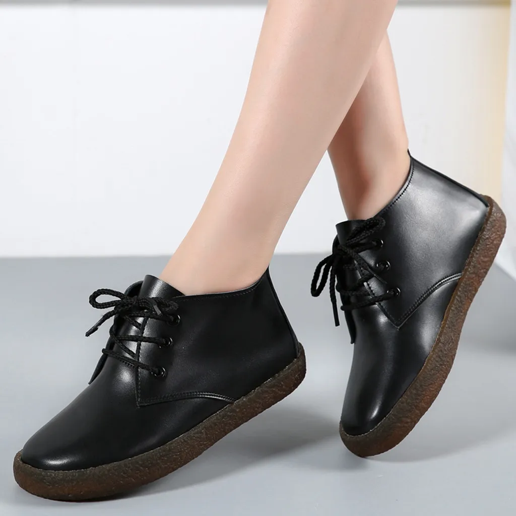 Odorola Women S Lace Up Flat Leather Shoes Casual Business Working