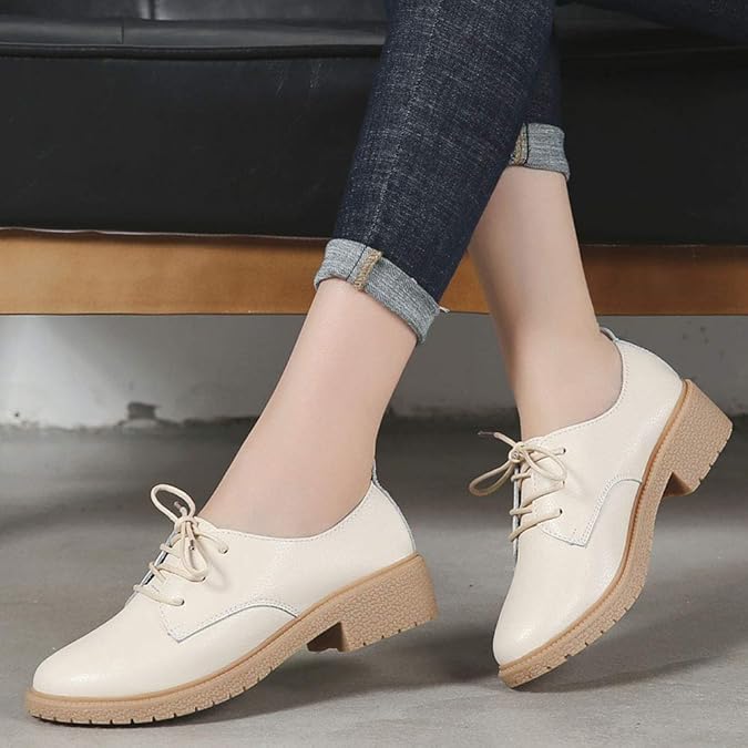 Leather Oxford Shoes For Women Formal Casual Shoes Womens Lace Up