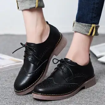 Women S Casual Leather Shoes Oxford Brogue Lace Up Black Size 8 5