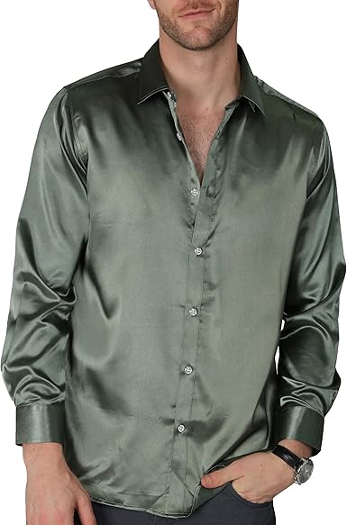 Vicalled Men S Satin Luxury Dress Shirt Slim Fit Silk Casual Dance