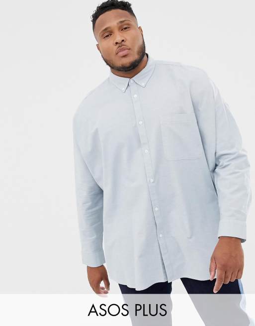 Asos Design Plus Oversized Oxford Shirt In Blue Yarn Dye Asos