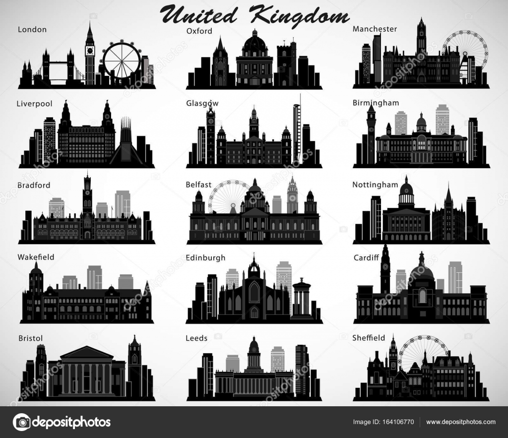 Britain S Cities Skylines Set Vector Silhouettes Uk Stock