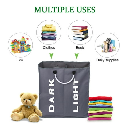Collapsable 2 Section Laundry Bag Foldable Laundry Hamper Durable