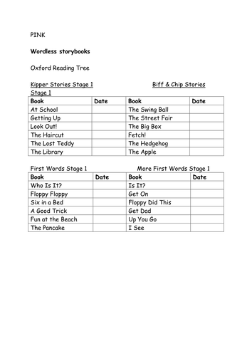 Reading Record For Oxford Reading Tree And Treetops Teaching