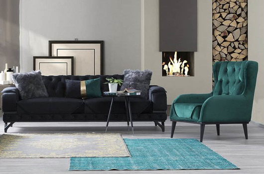 Turkuaz Kadife Chester Koltuk Modeli Klasik Chester Koltuklar