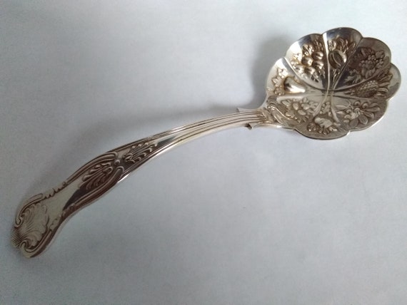 Silver Plated Berry Spoon Fruit And Flowers Vintage Epns A1