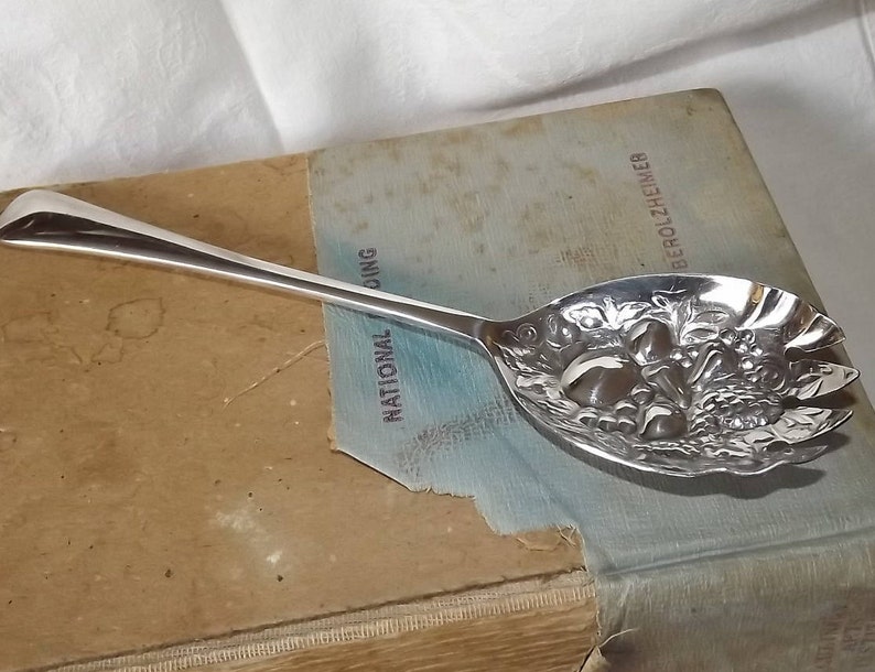 Vintage Repousse Fruit Spoon Salad Server Fruit Fork Silver Plated