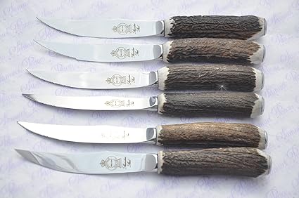 Amazon Com Six Genuine Stag Horn Antler Handle Steak Knife Made