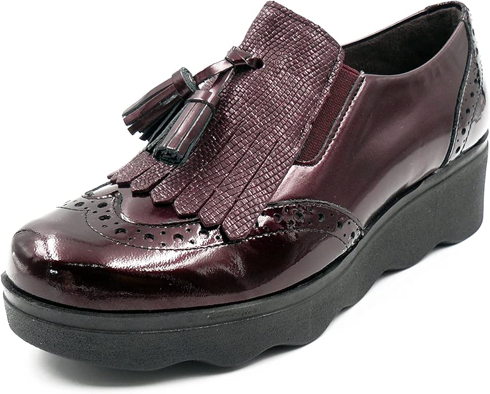 Zapatos Mujer Cordones Tipo Oxford Pitillos Piel Color Burdeos